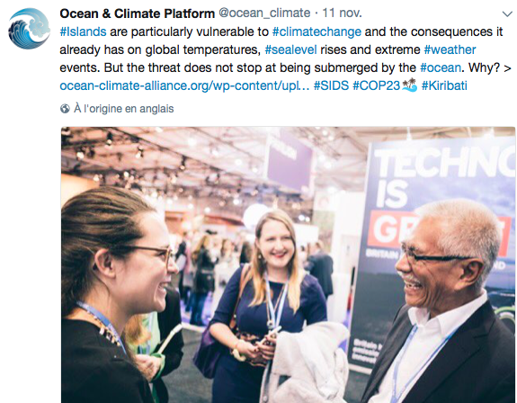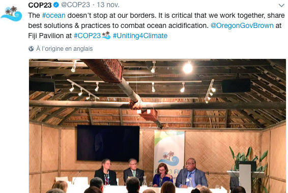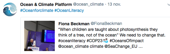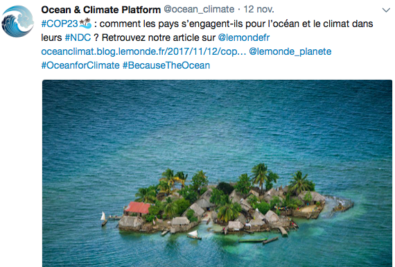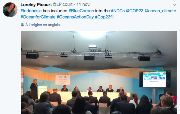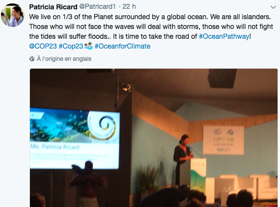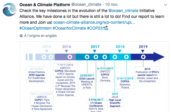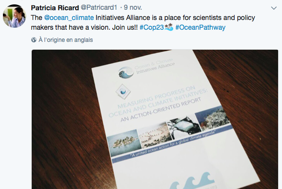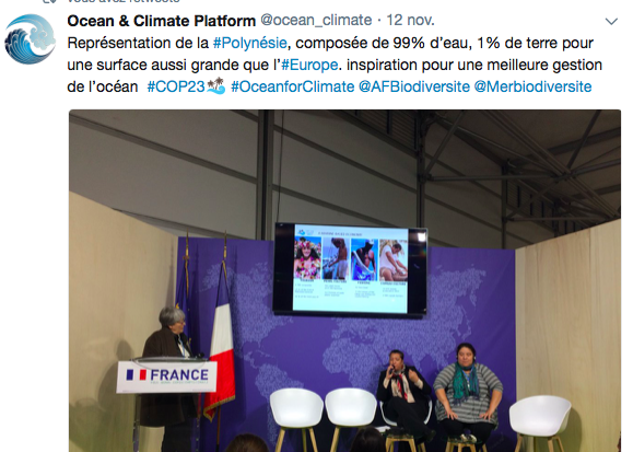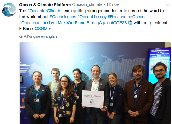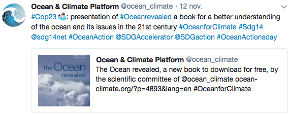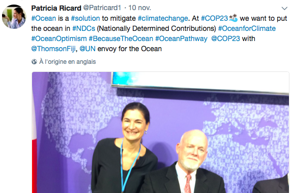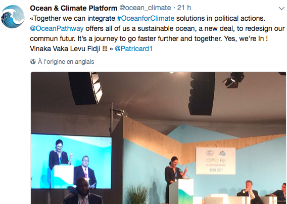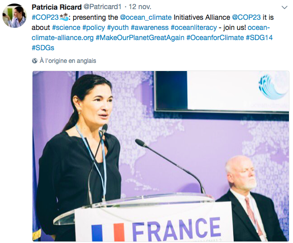 As a matter of fact, the ocean’s place is increasingly taken into account in the framework of the UNFCCC process. As Patricia Ricard (Vice-President of the Ocean and Climate Platform, OCP) said, one just has to look at the evolution of the logos from COP21 to COP23 to notice that the blue color prevails gradually over green.