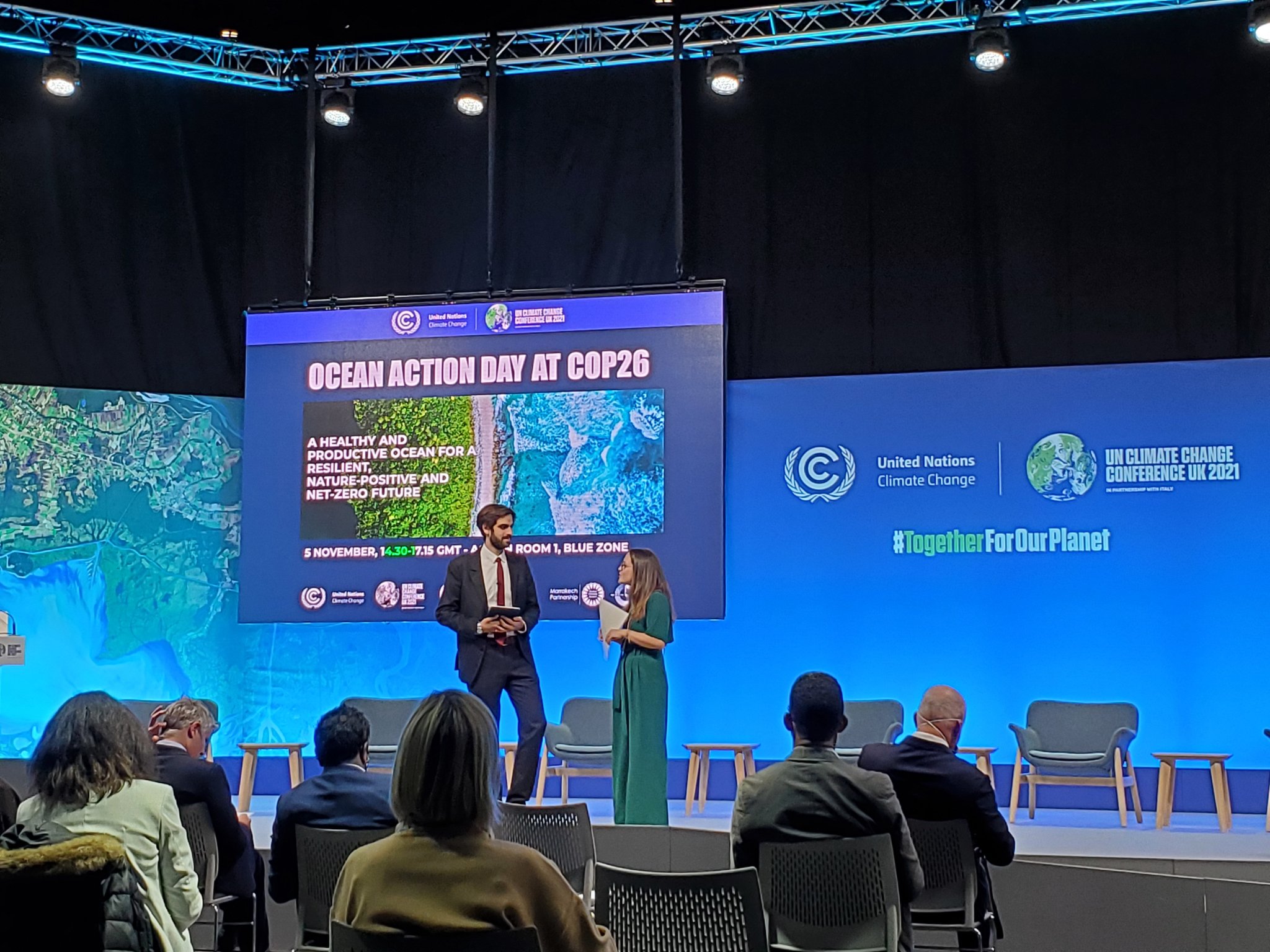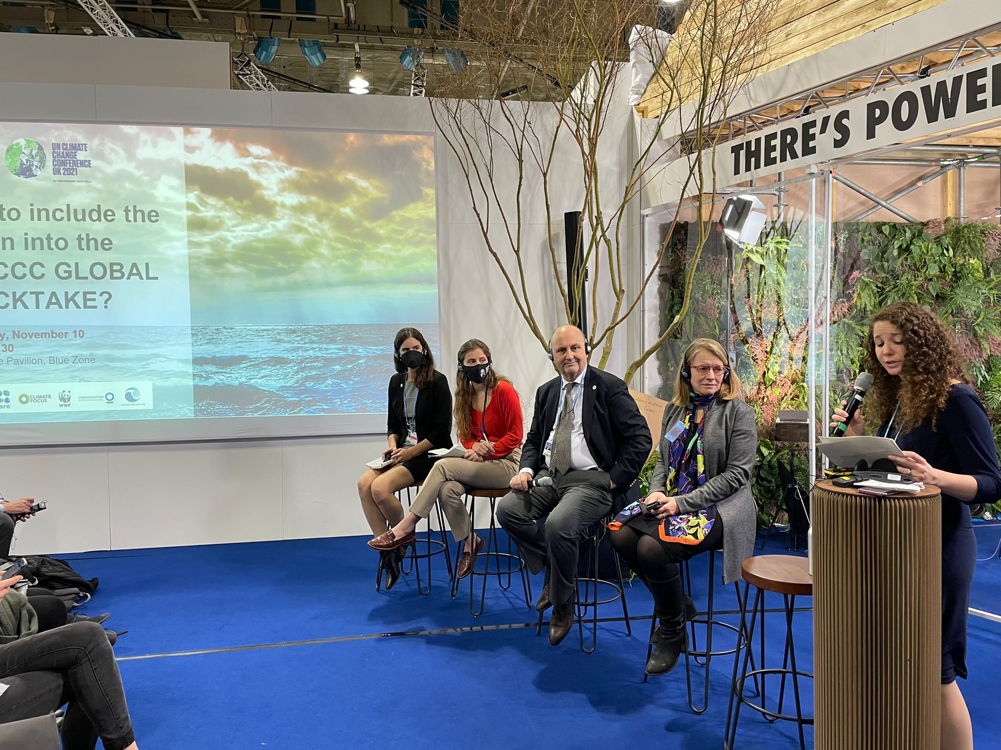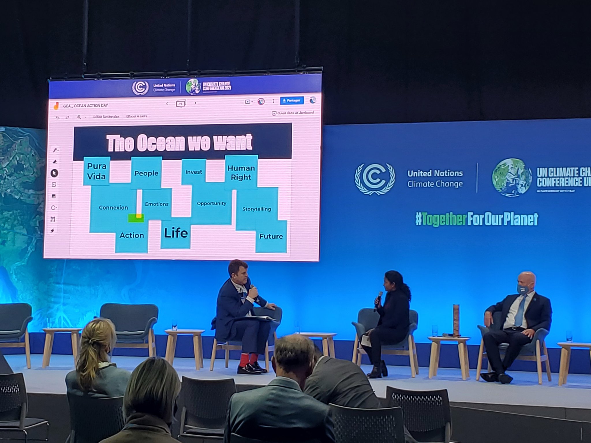 • Le 2 Novembre, sur le pavillon français, la POC a co-organisé avec l’Office Français de la Biodiversité (OFB) l’évènement: ‘Un océan de solutions pour faire face aux crises du climat et de la biodiversité’. Cet événement de haut-niveau, modéré par la secrétaire générale de la POC, Loreley Picourt, a réuni plusieurs représentants politiques, notamment Barbara Pompili, Ministre française de la transition écologique; Andrea Meza, Ministre de L’Environnement et de l’Énergie du Costa Rica; Andres Couve, Ministre de la Science, Technologie, Savoir et Innovation du Chili; Sue Biniaz, envoyée spéciale adjointe du président des États-Unis pour le climat, ainsi que Peter Thomson, envoyé spécial  des Nations Unies pour l’océan. Après le mot d’ouverture du président de la POC, Romain Troublé et les prises de paroles politiques, Joachim Claudet, Président du Comité Scientifique de la POC, a présenté le dernier policy brief de la POC “Protéger l’océan, atténuer le changement climatique?”.